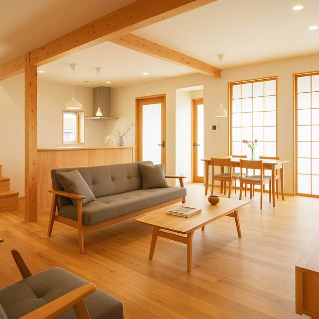 木の特性を活かした設計で、四季の移ろいに寄り添う快適な空間を実現。地域の気候風土にも配慮し、木と共に生きる住まいを追求しています。